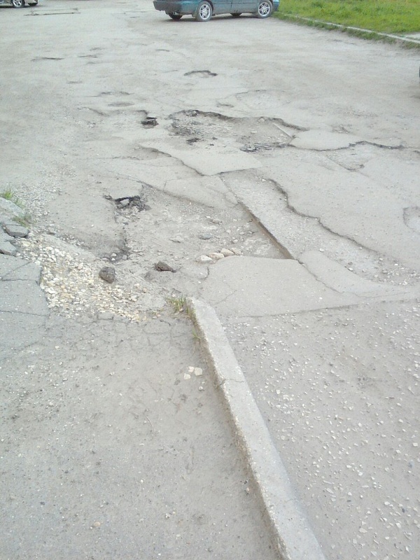 Прошу обратить внимание на двор между домами по Сенюкова 25/52 и Космонавтов 50. Некачественное асфальтовое покрытие создаёт много помех весной и осенью, так как двор полностью "затапливается" и по нему невозможно пройти. Пару лет назад был заасфальтирован небольшой участок (10-12 метров) , но уже через несколько недель на нем появились большие дыры. В старом покрытии ямы латают обычной тротуарной плиткой, что совершенно неприемлемо.